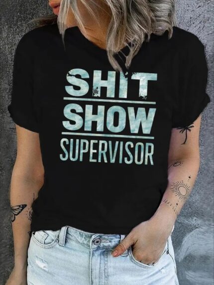 Breathable Regular Fit SHOW SUPERVISOR Typography Print Classic Basic Top T-Shirts, Fashionable Short Sleeves, Summer Streetwear, Casual Cool Tees, Women’s Clothing