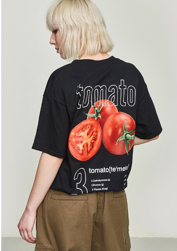 Summer new European and American street fashion vegetables broccoli printing pattern T-shirt men and women street bf personality student short sleeve