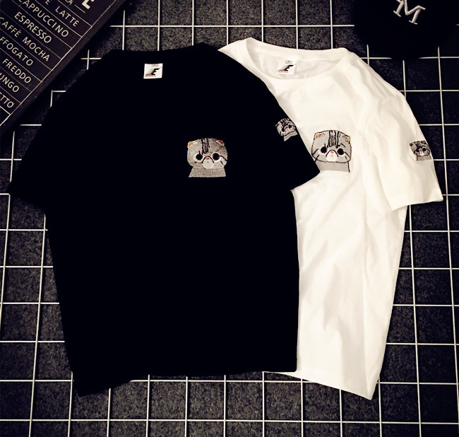 summer new Korean embroideryshort-sleeved T-shirt street fashion BF wind men and women couples tee