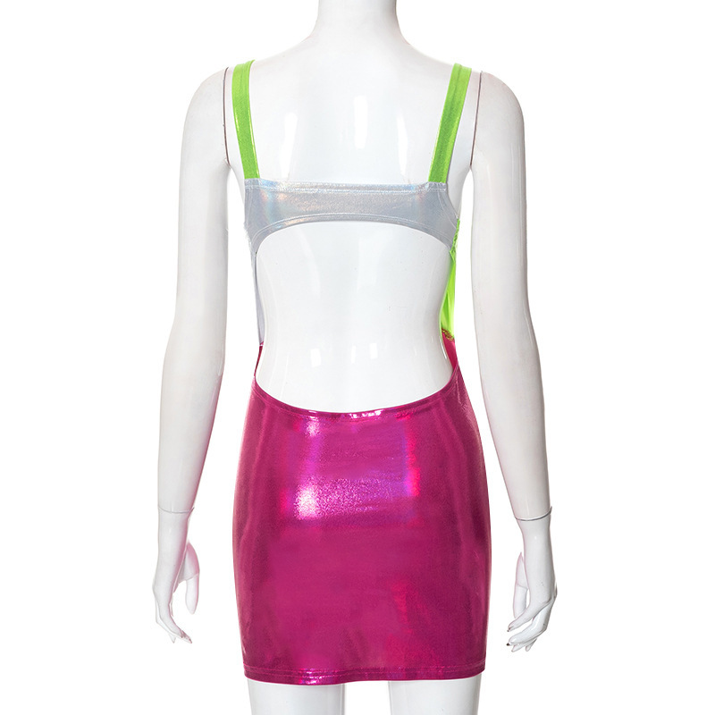 Be the first to review “Casual Three-color Stitching Crop Halter Short Dress”