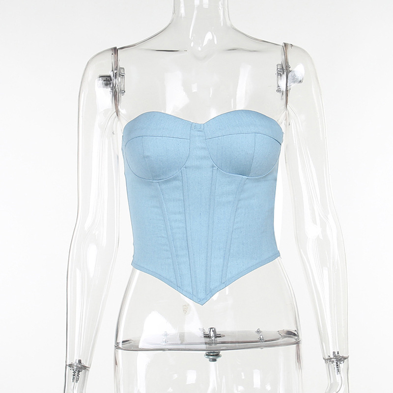 Popular elements: bra cup, imitation denim, waist girdle